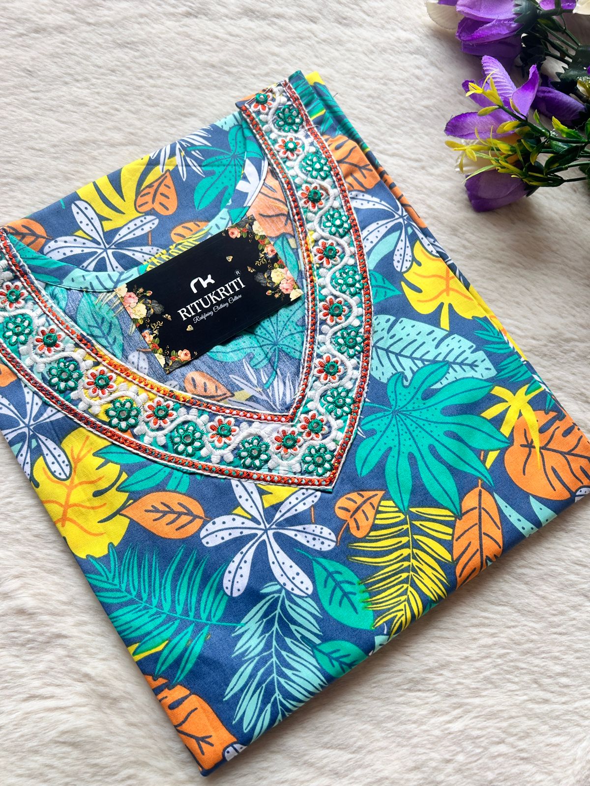 Thread work cotton kurti